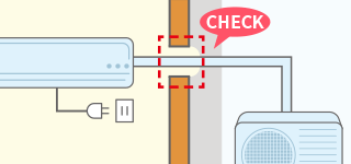 1.室内機と同じ高さから配管が出ている。