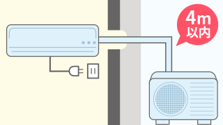 4.配管を4m以内で接続できる。