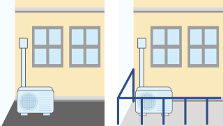 6.室外機は地面やベランダ床面に設置できる。